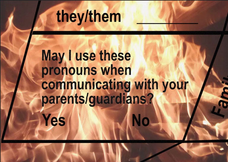On May 10th, the first of a pair of articles –the culmination of almost a month of research–was published to the website. It was titled “Whose Children are They?” and can be found on this Substack or on the Valor Dictus site. The story was inspired by a worksheet that had been distributed to me at the beginning of the year by one of my teachers that asked whether the pronouns provided to the teacher on the form should be used when communicating with the student’s parents. I wrote in opposition to the practice and the VDOE document that effectively mandates it. I wrote against schools lying to parents and the only hint that I was against “affirmative care” was at the very end in an author’s note promising a second article explaining why some parents have problems with “gender-affirming” care. After some editorial pushback, in which I managed to demonstrate that my facts were accurate and my quotes were real2, my article was published in its entirety.